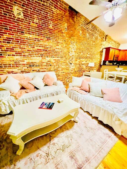 You will be in the heart of historic downtown Wilmington, NC! Steps from shops, restaurants, coffee shops, and the Riverwalk! See a show at the downtown waterfront amphitheater! Take in a sunset cruise, a carriage ride, or just stroll through the streets. Eating dinner may be on a balcony overlooking the infamous Cape Fear River or in one of the many locally owned, beautiful restaurants! Done with walking? Enjoy some time inside your spacious, cozy suite perfectly appointed just for you! Welcome to the amazing, beautiful, 100+-year-old Front Street Suites! You cannot be in a better downtown Wilmington location as you are on the corner of Market Street and Front Street! The apartment is on the second floor of a 100+-year-old building! Beautiful exposed brick and 500 square feet all to yourself! You have a fully stocked kitchen with everything you need from wine glasses to beautiful dinnerware to, most important, coffee and teas to wake you up for your day! There is a bar with seating for your snacks or meals. Snacks and water are provided for your arrival and comfort as a “welcome” and “thank you” for being our guest. The living room is designed to be cozy with lots of space to snuggle up and watch a movie on the big-screen television. The television is set up with streaming services so bring your logins and keep up with your favorite programs and movies while in your home away from home! The bathrooms have plenty of space, a walk-in tiled shower, ample lighting, and plenty of counter space. Basic toiletries are provided as well as a hairdryer and cozy bath mats. The bedrooms are super cozy and comfortable with a substantial comforter, extra blankets, and plenty of pillows. All linens are white, crisp, and clean except for the extra blankets giving the space some much-needed texture, color, and warmth. The bedrooms have earplugs for each guest because the building is over 100 years old and is located right in the heart of the downtown activities. This is not the quietest location but it is the most convenient with the most to offer within walking distance. When you walk outside, be ready to be in the thick of the downtown activities, restaurants, and nightlife. Carriage rides are on the same corner as the building and there are numerous restaurants at the same intersection as the unit. Welcome to Wilmington! Have an amazing stay! We love to host! Let us know if there is anything we can do to improve your experience! We hope you love your experience and will return to stay with us many times! The door to the building is noted with the address. The door is black with large lettering with the address. The door has a combination lock that guests will receive prior to check-in. Guests will walk up one flight of stairs to a common landing/hallway. The unit door is at the top of the stairs off the landing/hallway. This is a common space. Once you enter the apartment, the entire apartment is private and for the use of only the guests on the registration. You will access the apartment from another keypad and your access code to your unit will be the last four digits of the primary guest’s phone number. The check-in is contactless. Messages will be answered asap. Any additional interactions are at the guests’ request. The neighborhood is in historic downtown Wilmington, NC! This is the place to be for all entertainment and activities! Step outside to wonderful restaurants, coffee shops, and nightlife. Walk around and experience carriage rides through historic neighborhoods, boat rides on the infamous Cape Fear, ghost tours, music venues, and the unbeatable Riverwalk! This is where people go to enjoy everything a historic downtown has to offer and has been offering for hundreds of years! There is street parking that can be paid for, extended, and updated via the PayByPhone app. Street parking is paid daily from 9:00 am to 6:30 pm in varied intervals from .5 to 2-hour increments. There is also a parking deck about 100 feet away where you can park and leave for the term of your stay. The parking deck is recommended and enjoying amenities within walking distance is ideal! The parking deck location is: 115 Market Street Wilmington, NC 28401